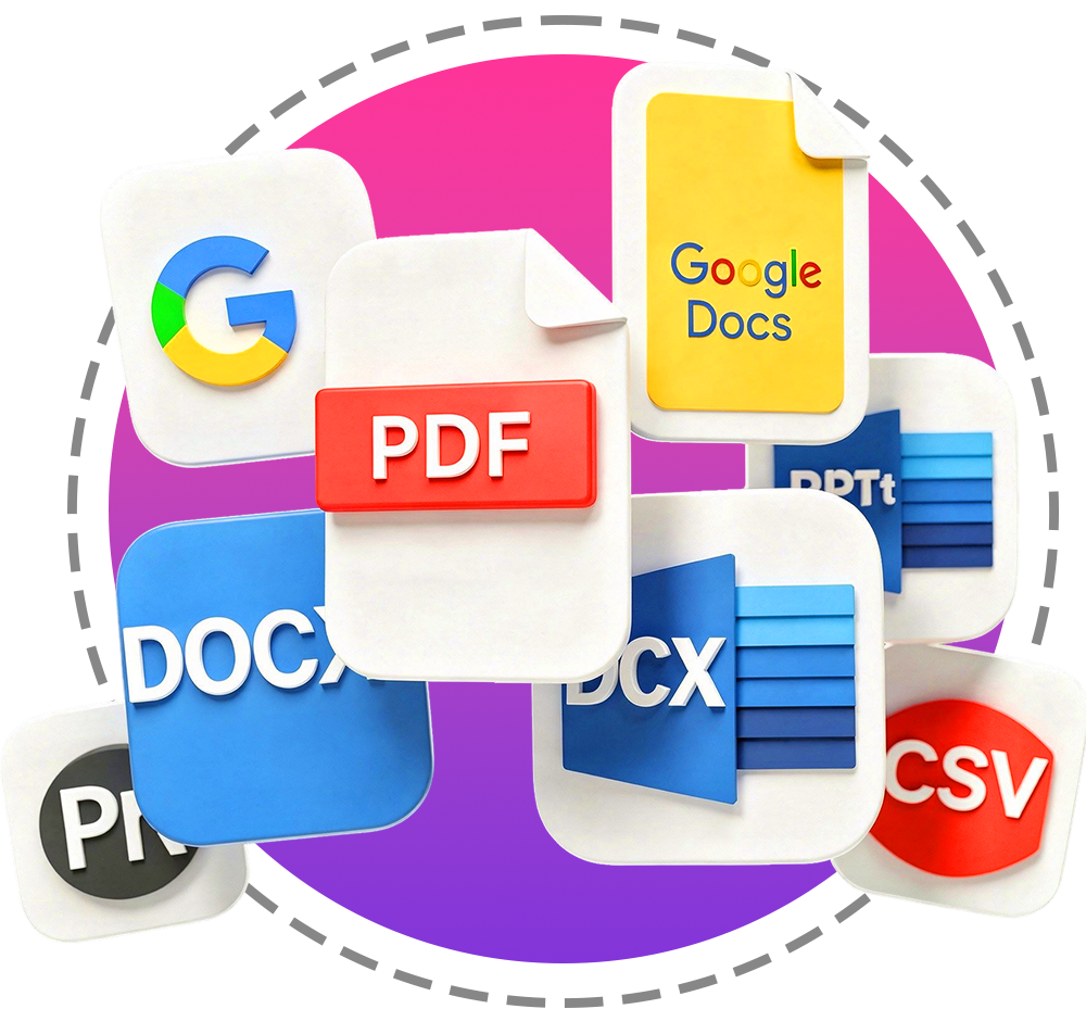 Every report in three formats. PDF for instant delivery. Google Doc for easy sharing. Word for complete customization and rebranding. Use as-is or make them completely your own.