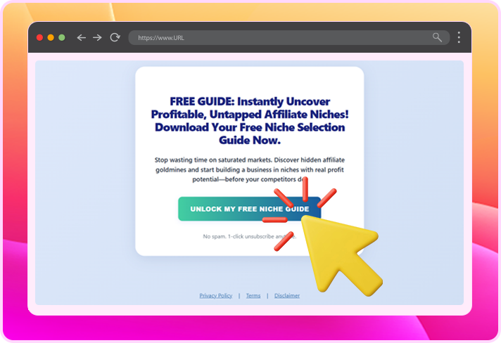- "FREE GUIDE: Instantly Uncover Profitable, Untapped Affiliate Niches!"
