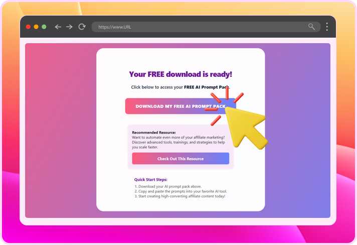 - "GRAB YOUR FREE AI PROMPT PACK! Get 60 Free, Ready-to-Use AI Prompts to Supercharge Your Affiliate Marketing"